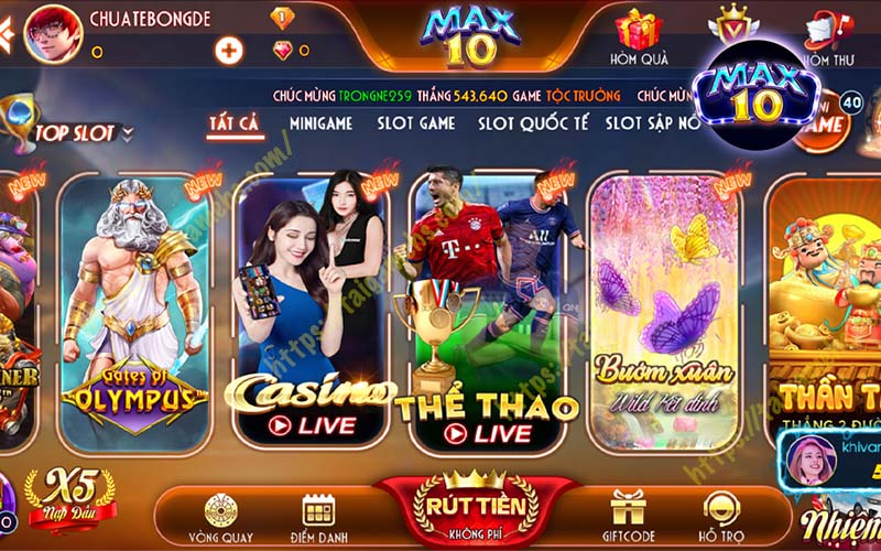- Vòng quay miễn phí: Trong những sự kiện đặc biệt, người chơi còn có cơ hội nhận được vòng quay miễn phí hoặc quà tặng từ MAX10.